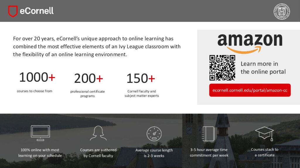 Cornell’s Master of Science in Business Analytics program is designed from the ground up to uniquely prepare working professionals seeking to build a career in analytics with the skills employers desire most: a comprehensive understanding of the language and concepts of business, strong communication and teamwork skills, and the ability to apply the tools of data science to real problems and real data.